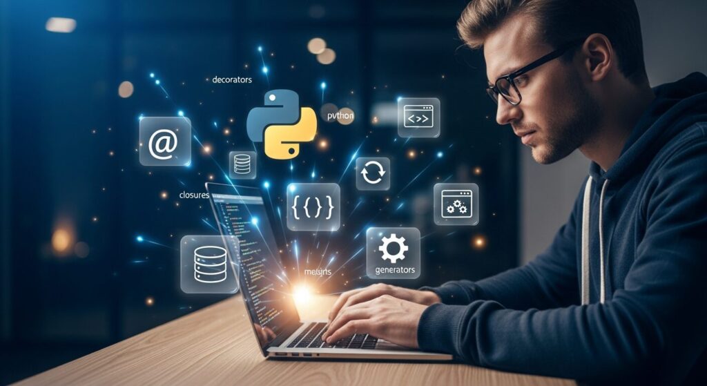 파이썬 중급 함수 실생활 코딩을 통해 데코레이터, 클로저, 제너레이터 등 중급 함수 활용법과 네 가지 실무 프로젝트를 배우고 업무 자동화부터 데이터 처리, 웹 스크래핑까지 효율적인 코딩 기술을 익혀보세요.